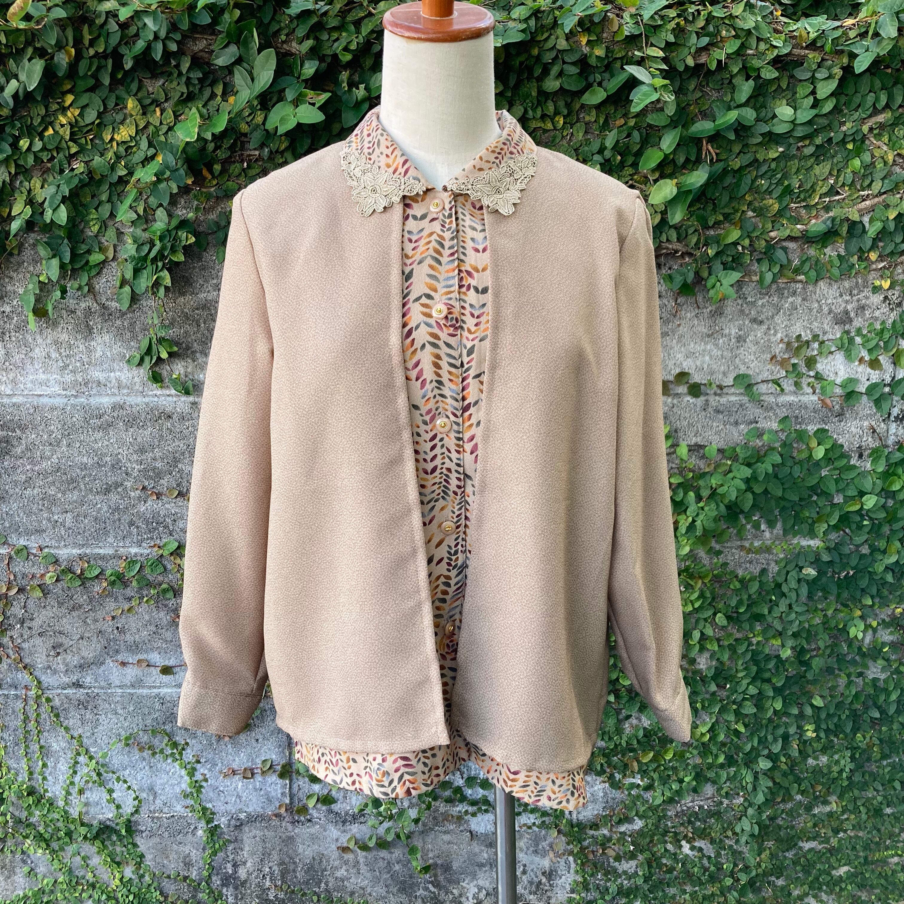 落ち着いたベージュカラーはコーディネートがしやすく、古着初心者さんにもおすすめの1着です。